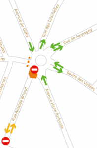 - Il sera impossible de sortir de la rue Briand vers le rond-point de l’Étoile