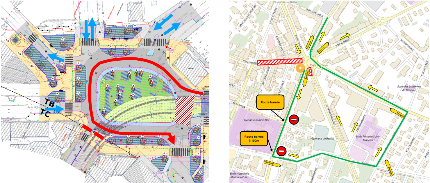 Les rues Madame Fleutet et Platanes seront mises en impasse à partir du 13 novembre, lorsque la rue du Faucigny fermera à la circulation. Les accès se feront respectivement par l’avenue Jules Ferry et la rue Pasteur.